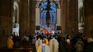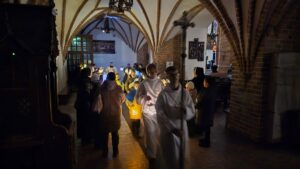 Dziś we wszystkich kościołach poranną Mszą św. Roratnią rozpoczął się nowy rok liturgiczny, czas Adwentu. Tak też i było w naszej Bazylice. Dzisiejszej Mszy św. Roratniej, sprawowanej o godzinie 6.45 przewodniczył proboszcz naszej parafii, ks. dr Andrzej Pawłowski razem z ks. Józefem, ks. Jerzym i ks. Wiktorem.