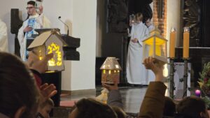 W swoim kazaniu ks. proboszcz nawiązał do tekstów z liturgii dnia – czytania z Księgi proroka Izajasza oraz ze słów z Ewangelii według Świętego Mateusza. Dla licznych wiernych zgromadzonych w Bazylice szczególnie mocno przemówiły słowa ks. proboszcza odnoszące się do słów z Ewangelii wg św. Mateusza, mówiącym o wielkiej wierze żołnierza rzymskiego zwracającego się do Jezusa z prośbą o uzdrowienie swojego sługi. On, setnik rzymski, wbrew rozkazom, zwrócił się do Chrystusa o pomoc, bo uwierzył, że jest kimś, kto ma władzę i moc ponad jego zwierzchnikami. Czas Adwentu to czas nam dany, byśmy mieli w sobie taką wiarę w drodze na przyjęcie Bożej Dzieciny.O godzinie 17.00 rozpoczęły się roraty dla dzieci. Mszy św. koncelebrowanej przewodniczył ks. Łukasz.
