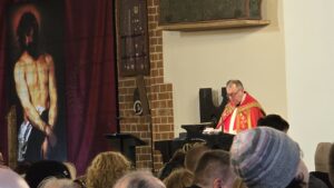 Modlitwa zakończyła się błogosławieństwem i chwilą adoracyjnej ciszy, w której wierni powierzali Bogu swoje intencje, trwając przy Ukrzyżowanym w godzinie Jego śmierci.