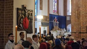 W Wielki Piątek, w godzinie śmierci Jezusa, o 15.00 w kołobrzeskiej bazylice odbyła się Droga Krzyżowa prowadzona przez proboszcza parafii, ks. dr. Andrzeja Pawłowskiego. Wierni zgromadzili się w ciszy i modlitwie, towarzysząc Chrystusowi w Jego ostatniej drodze i rozważając tajemnicę Jego ofiary.