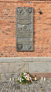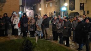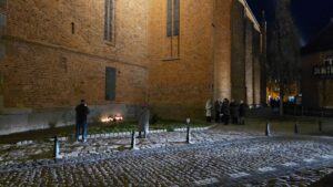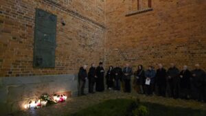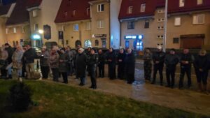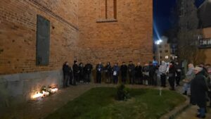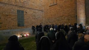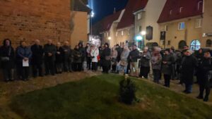 Po krótkim przypomnieniu, że to w tym miejscu w roku 1975 ówczesny metropolita krakowski, ks. kardynał Karol Wojtyła razem z ówczesnym prymasem Polski, ks. kardynałem Stefanem Wyszyńskim, modlili się o pomyślność dla Kołobrzegu i jego mieszkańców w 975 -ą rocznicę utworzenia biskupstwa na tym terenie, zgromadzeni wierni razem z proboszczem parafii mariackiej, ks. dr Andrzejem Pawłowskim, odmówili dziesiątkę Różańca św., oraz na zakończenie odśpiewali ulubioną pieśń naszego Papieża,”Barkę”