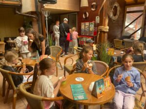 W słoneczny, sobotni dzień, schola „Kołobrzeskie Nutki” wybrała się na rejs statkiem Jantar. Podczas godzinnego rejsu dzieci mogły odwiedzić kapitana statku oraz uwiecznić ten moment na wspólnym zdjęciu. Uczestniczyły w konkursach z morskimi nagrodami oraz śpiewie piosenek Pana Kleksa, a nawet zaśpiewały piosenkę Jesteś Królem. Nasza kołobrzeska wycieczka zatrzymała się także na frytkach i w lodziarni.