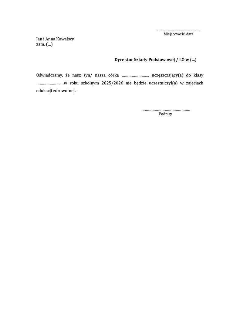 Wzór rezygnacji z przedmiotu: Edukacja zdrowotna