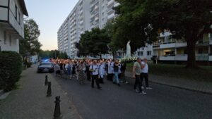 Kulminacyjnym momentem nabożeństwa była procesja ulicami Kołobrzegu. Wierni, niosąc zapalone świece, oddawali hołd Matce Bożej Fatimskiej, śpiewając pieśni Maryjne i tworząc atmosferę modlitewnej zadumy. Procesja zakończyła się przy pomniku milenijnym, gdzie wspólnie odśpiewano Apel Jasnogórski.