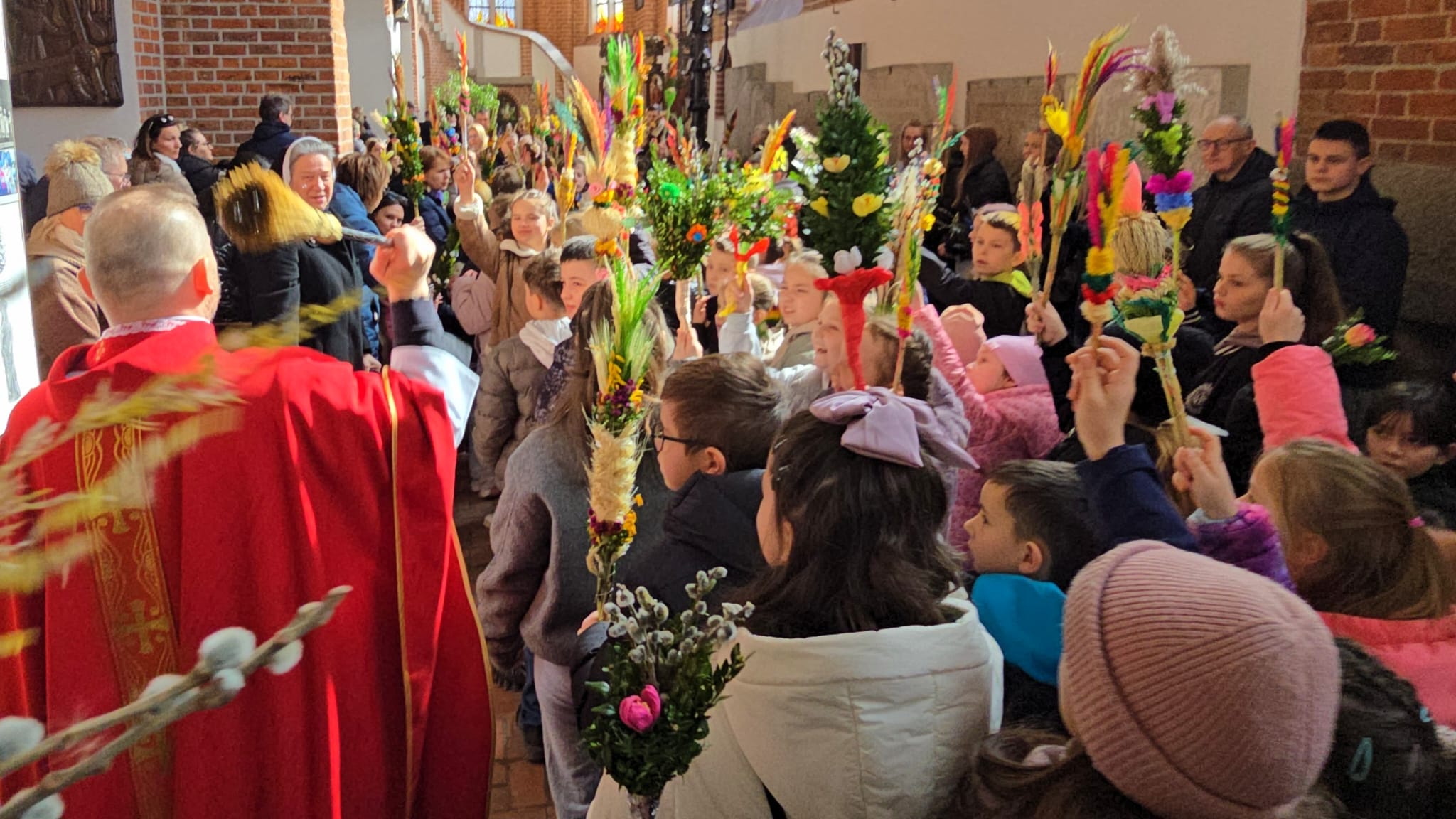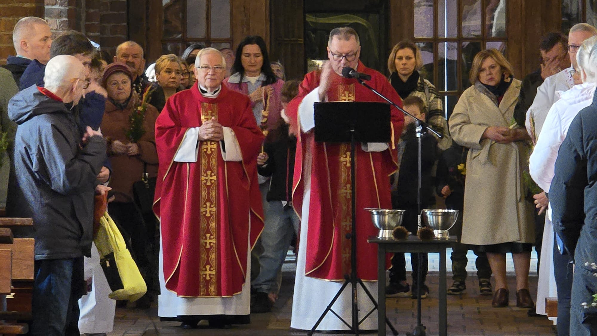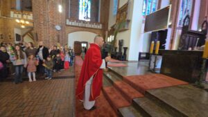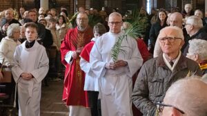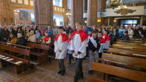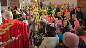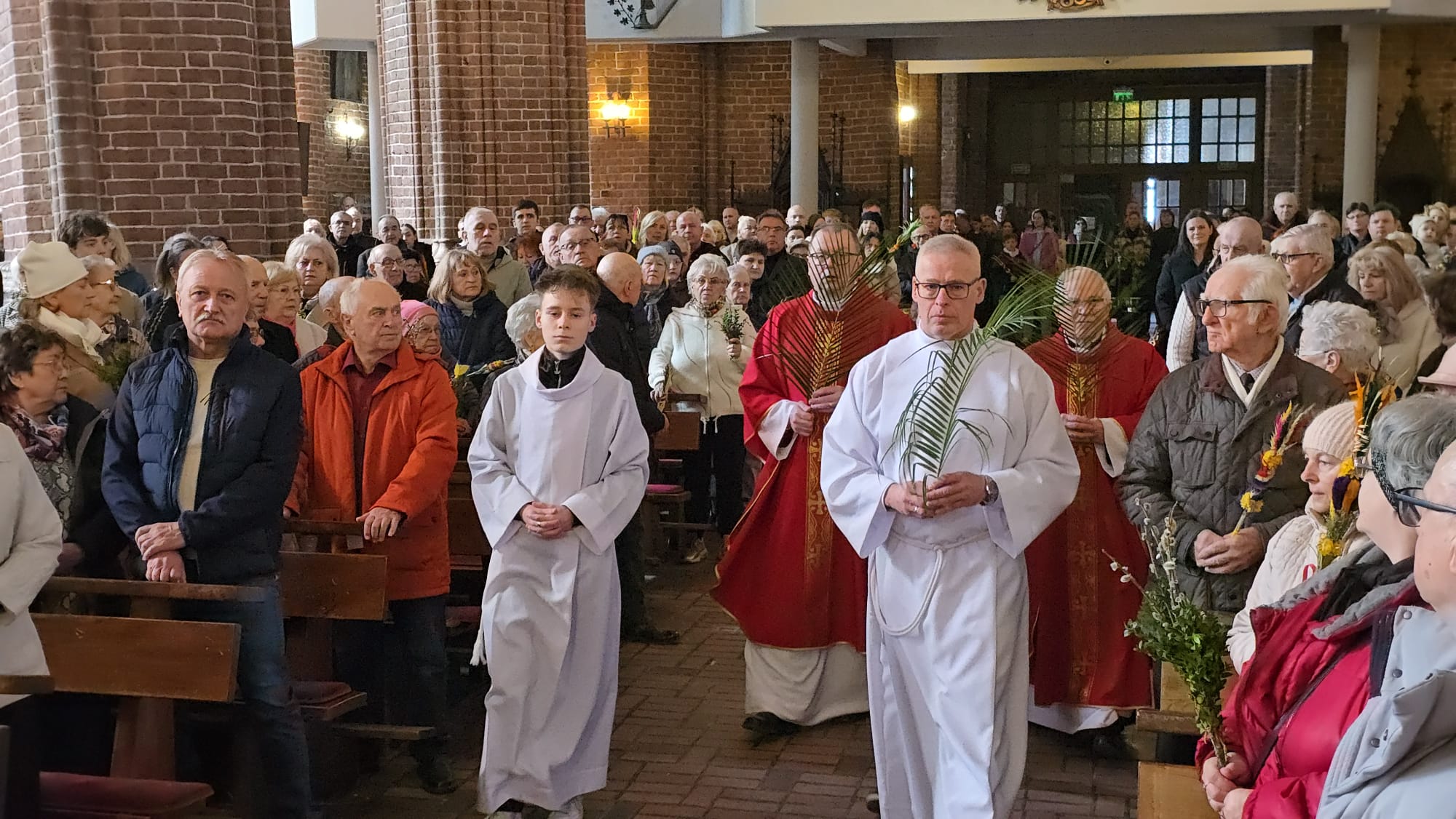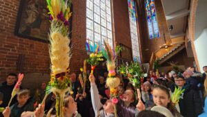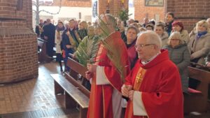 Te wydarzenia upamiętniamy w kościołach, niosąc palmy na nabożeństwa, a w ich trakcie słuchając odczytywanej Męki Pańskiej, w tym roku liturgicznym wg św. Mateusza.Tak było i w naszej Bazylice na wszystkich nabożeństwach, wprowadzających nas w uroczyste obchody Wielkiego Tygodnia.