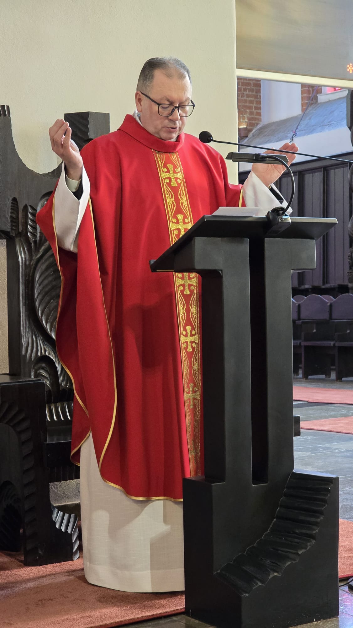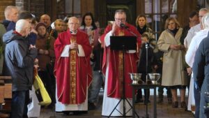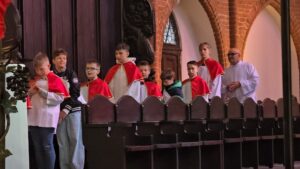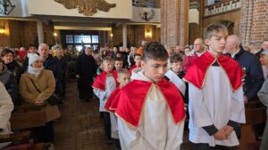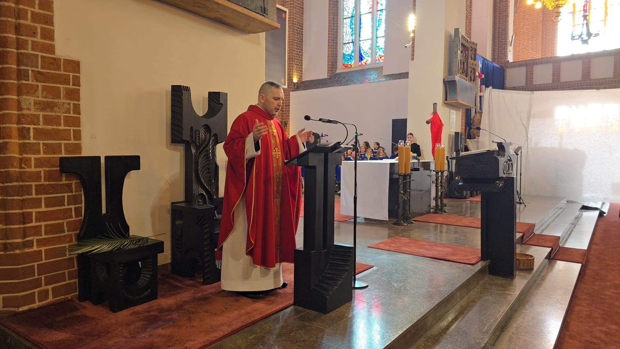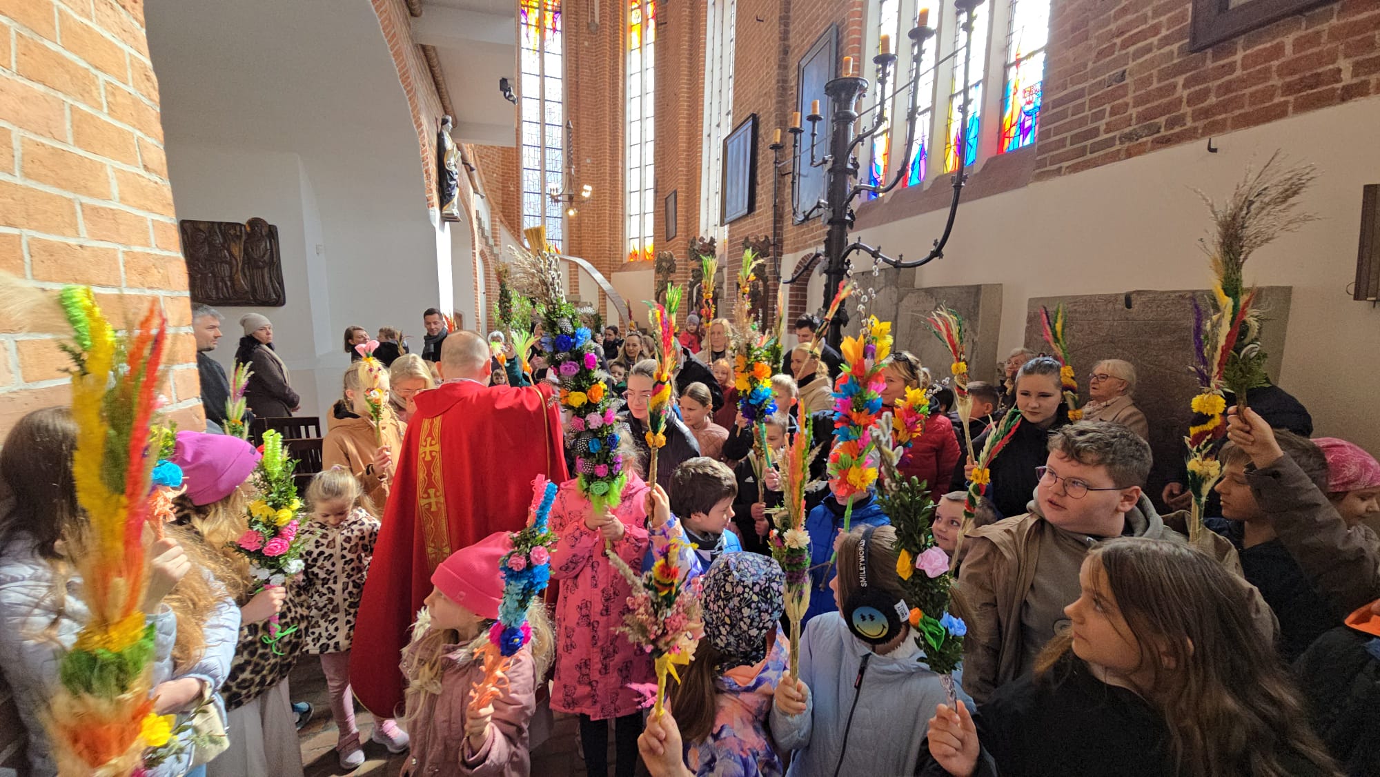 Te wydarzenia upamiętniamy w kościołach, niosąc palmy na nabożeństwa, a w ich trakcie słuchając odczytywanej Męki Pańskiej, w tym roku liturgicznym wg św. Mateusza.Tak było i w naszej Bazylice na wszystkich nabożeństwach, wprowadzających nas w uroczyste obchody Wielkiego Tygodnia.