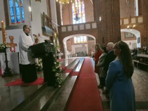 – “Członkowie Akcji Katolickiej to nie grupa jakichś wybranych ludzi. Chociaż każdy z nas, każdy w inny sposób i na innym etapie swojego życia doznał pewnego rodzaju przebudzenia i głębszego zrozumienia swojej roli w Kościele jako laikat. W jakimś sensie chyba jest to powołanie… Bardzo się cieszymy, że pomimo trudnego czasu dla Kościoła wciąż znajdują się nowe osoby, które wsłuchują się w wewnętrzny głos Boga, które mają świadomość swojej roli w Kościele. Są osoby, które mają odwagę, aby opuścić swoje ciepłe, wygodne i anonimowe miejsce w kościelnej ławce. Wszystkim naszym nowym kandydatom życzymy wytrwałości, pogłębienia życia chrześcijańskiego oraz apostolskiego zapału w realizowaniu misji Kościoła” – powiedziała Katarzyna Paciorkowska, prezes Parafialnego Oddziału Akcji Katolickiej.