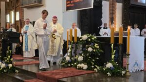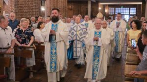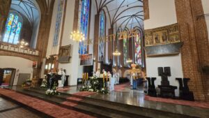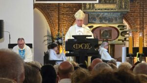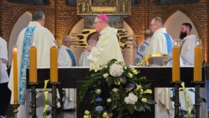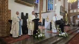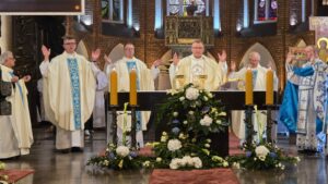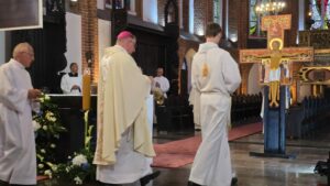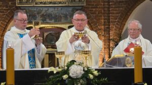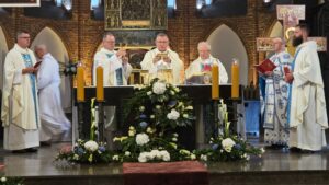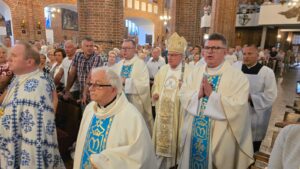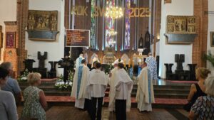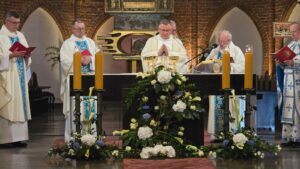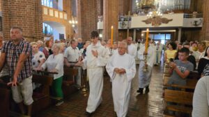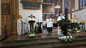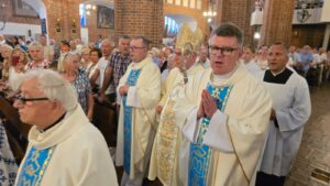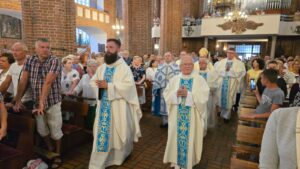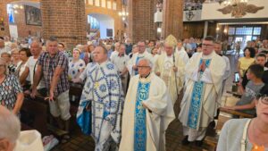 Podczas liturgii biskup poświęcił wiązanki ziół i kwiatów, co jest tradycyjnym elementem święta Wniebowzięcia Najświętszej Maryi Panny, nawiązującym do dawnych zwyczajów i symboliki związanej z tym dniem. To wyjątkowe wydarzenie zgromadziło wielu parafian oraz gości, którzy wspólnie uczestniczyli w modlitwie i celebrowali święto.