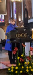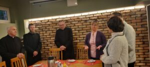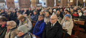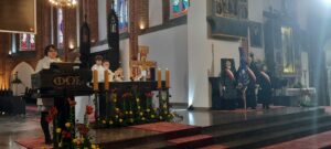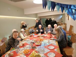 Ostatnia niedziela roku liturgicznego, w którą przypada Uroczystość Jezusa Chrystusa Króla Wszechświata Akcja Katolicka w Polsce obchodzi swoje patronalne święto. To wyjątkowy dzień także dla członków naszego Parafialnego Oddziału Akcji Katolickiej, działającego od 27 lat przy kołobrzeskiej bazylice. Dla członków tego stowarzyszenia jest to szczególny czas – dzień, w którym można spojrzeć na siebie jak na dzieci Króla – dzieci, które są odpowiedzialne za szerzenie Królestwa Bożego w codzienności. Świętowanie tej Wspólnoty rozpoczęła uroczysta Msza św. o godz. 10:00, której przewodniczył ks. proboszcz Andrzej Pawłowski – parafialny asystent i duchowy opiekun Akcji Katolickiej. Podczas Eucharystii wystawiony został poczet sztandarowy, a członkowie AK zaangażowali się w oprawę liturgiczną Mszy św. Po duchowej i modlitewnej uczcie świętowanie przeniosło się do sali Św. Rodziny, gdzie przy obficie zastawionym stole, kawie, herbacie i licznych smakołykach członkowie Akcji Katolickiej mogli miło spędzić kilka godzin na wspólnych rozmowach, wspomnieniach i śpiewaniu piosenek. Była także okazja do wysłuchania krótkiego przypomnienia historii figury Jezusa Chrystusa Króla w Świebodzinie, a także o Sanktuarium w Chojnie, w którym od 2021r. znajduje się obraz Jezusa Chrystusa Króla, ufundowany przez amerykańską polonię z Chicago. Pomimo licznych, niedzielnych obowiązków na spotkanie na krótko przyszedł także ks. Proboszcz, ks. Wiktor, ks. Adam oraz kleryk Piotr.