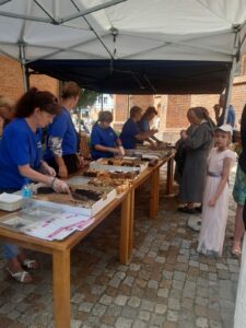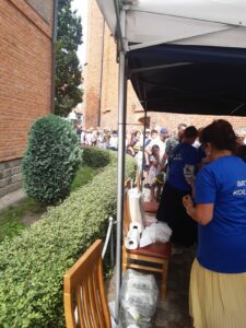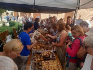 W miniony piątek, w Uroczystość Wniebowzięcia Najświętszej Maryi Panny oraz parafialnego odpustu, członkowie Akcji Katolickiej zorganizowali kiermasz przy domu parafialnym. Tradycyjnie można było na nim nabyć wiele wspaniałych ciast – domowych wypieków, ale także ciasta od kołobrzeskich cukierników, które mocno wsparły kiermasz, by wystarczyło dla jak największej liczby chętnych do spróbowania świątecznych wypieków. I udało się! Sprzedaż słodkości zakończyła się bowiem około godziny 18:00. Oprócz ciasta, na innym stoisku można było przebierać w ogromnej ilości książek katolickich. Miłośnicy słowa drukowanego mogli wyszukać dla siebie wiele książek o interesującej i ciekawej dla nich tematyce za niewielką, dobrowolną cenę, ponieważ wszystkie książki były wycenione jako “dar serca”. Cały dochód z kiermaszu miał szczytny cel. Członkowie Akcji Katolickiej zbierali bowiem na organizację corocznego, parafialnego konkursu o Św. Janie Pawle II oraz nagrody dla dzieci i młodzieży.