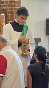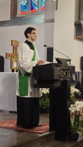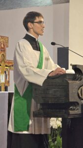 W minioną niedzielę (20 lipca) podczas wszystkich Mszy Świętych mieliśmy zaszczyt gościć alumnów naszego Wyższego Seminarium Duchownego: kleryków Mikołaja i Krzysztofa oraz diakona Filipa. Ich obecność w naszej parafii była nie tylko okazją do bliższego poznania życia seminaryjnego, lecz także do wspólnej modlitwy w intencji nowych powołań kapłańskich.