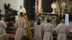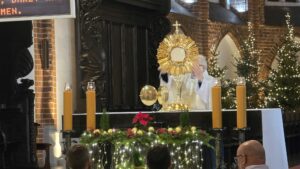 Po Eucharystii odbyło się nabożeństwo dziękczynno‑przebłagalne przed wystawionym Najświętszym Sakramentem. Modlitwę poprowadził ks. proboszcz, powierzając Bogu wszystkie intencje parafian, zarówno te pełne wdzięczności, jak i te, w których prosimy o przebaczenie i umocnienie na kolejny rok.